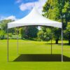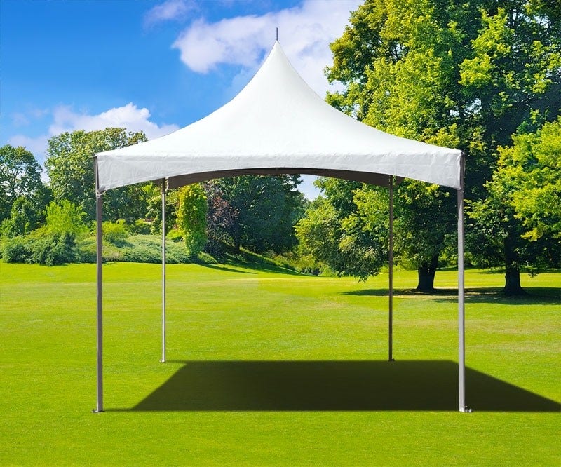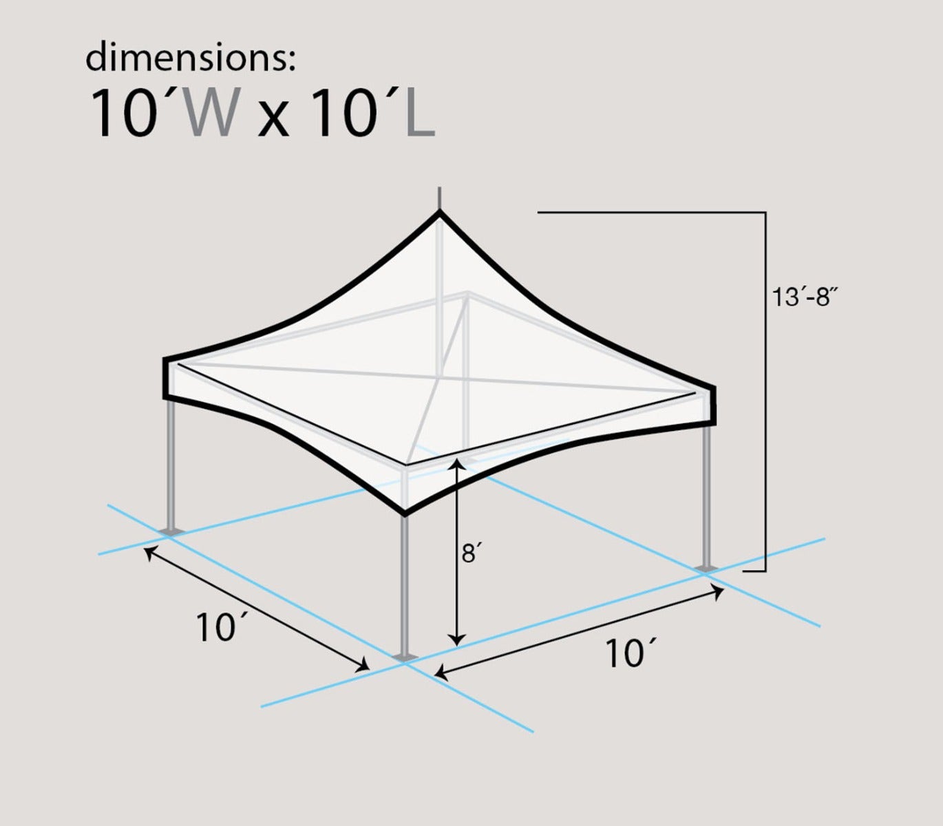 Our 10′ x 10′ High Peak Frame Tents are designed for a quick and easy setup. This stylish, sleek High Peak Frame Tent doesn’t need to be set up on grass — it can be set up in a parking lot or on other asphalt surfaces with one of our stake drivers (sold separately). Their size and elegant look make them ideal for outdoor events such as vendor booths at fairs, craft shows, flea markets, trade shows and similar events.