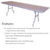 Our 8 foot commercial wood folding tables are designed with unsurpassed excellence and meant to stand up to the abuse of constant set up and tear down. Not only is this banquet folding table durable enough for the everyday rigors of commercial usage, but this table can be utilized in the home for setting up your party and event plans. It’s ideal for usage in banquet halls, training rooms, seminar settings, for use with hotel buffets and it makes an exceptional table for the office. Outfit your business with our commercial-quality folding tables today!