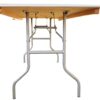 Our heavy-duty folding tables are constructed from 3/4″ thick birch plywood that has been sanded smooth without voids or patches and sealed on both sides with a tough, protective polyurethane finish. It features aluminum edging that has been high-pressured crimped to the tabletop without the use of any adhesives, providing not only a beautiful finish but reduces the instance of moisture penetrating into the wood. This rectangle folding table has full-length wood runners and wishbone-style folding legs that are attached directly to the tabletop with flush flat head carriage bolts.